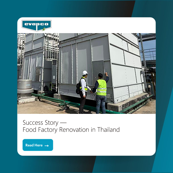 Four aging Non-Evapco cooling towers at a major Thai food processing plant were underperforming, with falling efficiency and rising energy use threatening production stability and cost management.